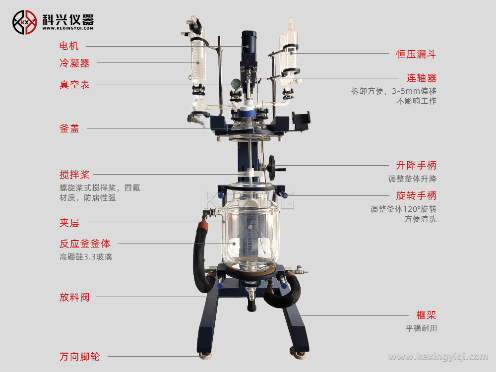 升降雙層玻璃反應釜通過雙層反應釜夾層,注入恒溫的(高溫或低溫)熱溶媒體或冷卻媒體,對反應釜內的物料進行恒溫加熱或制冷,并且可以提供攪拌。物料在反應釜內進行反應,并能控制反應溶液的蒸發與回流,反應完畢,物料可從釜底的出料口放出,操作極為方便。是現代化學小樣,中樣實驗、生物制藥及新材料合成的理想設備。