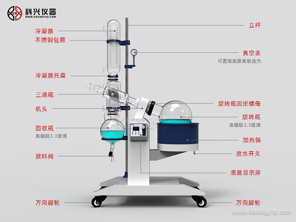 旋轉蒸發(fā)儀主要用于醫(yī)藥、化工和生物制藥等行業(yè)的食品等領域的中試,進行濃縮、結晶、干燥、分離及溶媒回收。有大容量、大口徑旋轉蒸發(fā)瓶,置于水浴中,邊旋轉邊加熱,使溶液高效擴散蒸發(fā)。產品可與循環(huán)水式多用真空泵、隔膜真空泵、低溫循環(huán)(真空)泵,循環(huán)冷卻器,恒溫循環(huán)器,低溫冷卻液循環(huán)泵等配套組成系統(tǒng)裝置。其原理為在真空條件下,恒溫加熱,使旋轉瓶恒速旋轉,物料在瓶壁形成大面積薄膜,高效蒸發(fā)。溶媒蒸氣經高效玻璃冷凝器冷卻,回收于收集瓶中,大大提高蒸發(fā)效率。特別適用對高溫容易分解變性的生物制品的濃縮提純。